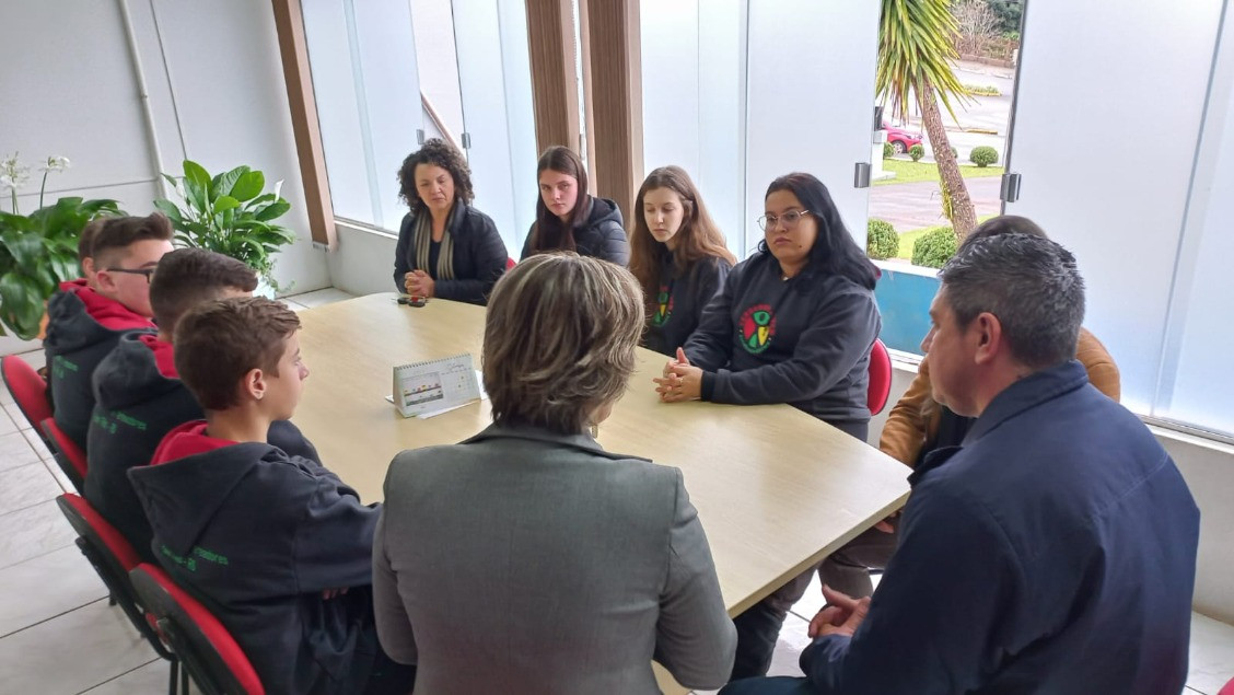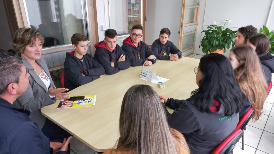 O grupo esteve acompanhado pela Presidente do Legislativo Verª Sidia Lurdes Martini Bessegato, pela Coordenadora do Programa VEREADOR JOVEM/ESCOLA VAI À CÂMARA, a Oficial Legislativo Maria Isabel Gelaim Vanz e pela Vice Diretora da Escola Estadual de Educação Básica Luiza Formighieri, parceira do Programa, Professora Rosimeri Souza de Paula.