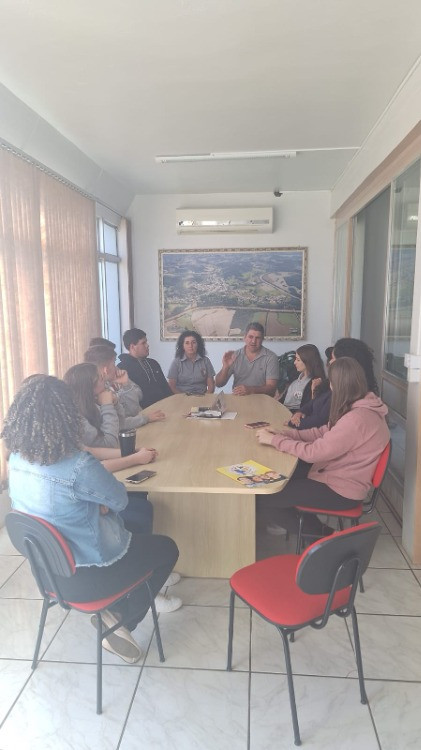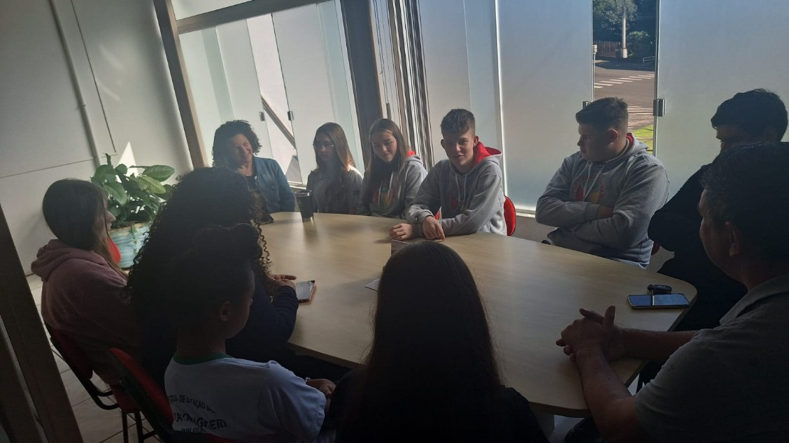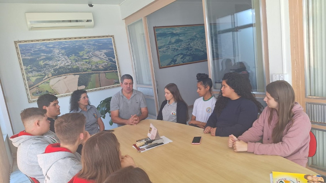 No último dia 12 de junho, conforme o Calendário de Atividades, os Vereadores Jovens da Câmara de Paim Filho, acompanhados pela Secretária da Mesa Diretora, Vereadora Elaine Regina Garbin Zanchet, pela Coordenadora do Programa, a Oficial Legislativo Maria Isabel Gelaim Vanz e pela Vice-Diretora da Escola Estadual de Educação Básica Luiza Formighieri, Profª Rosimeri Souza de Paula, foram recebidos pelo Prefeito Municipal Genes Jacinto Moterle Ribeiro.