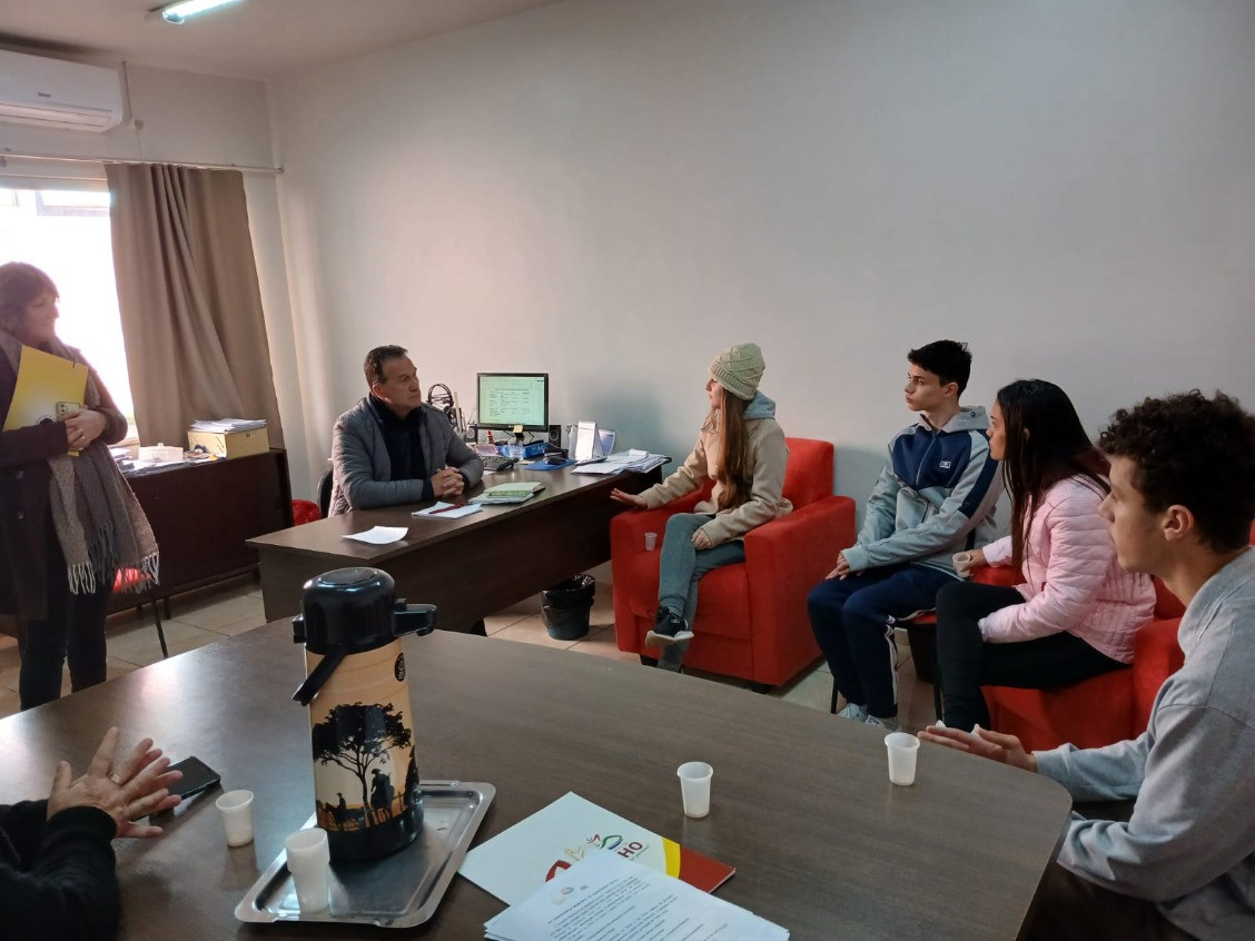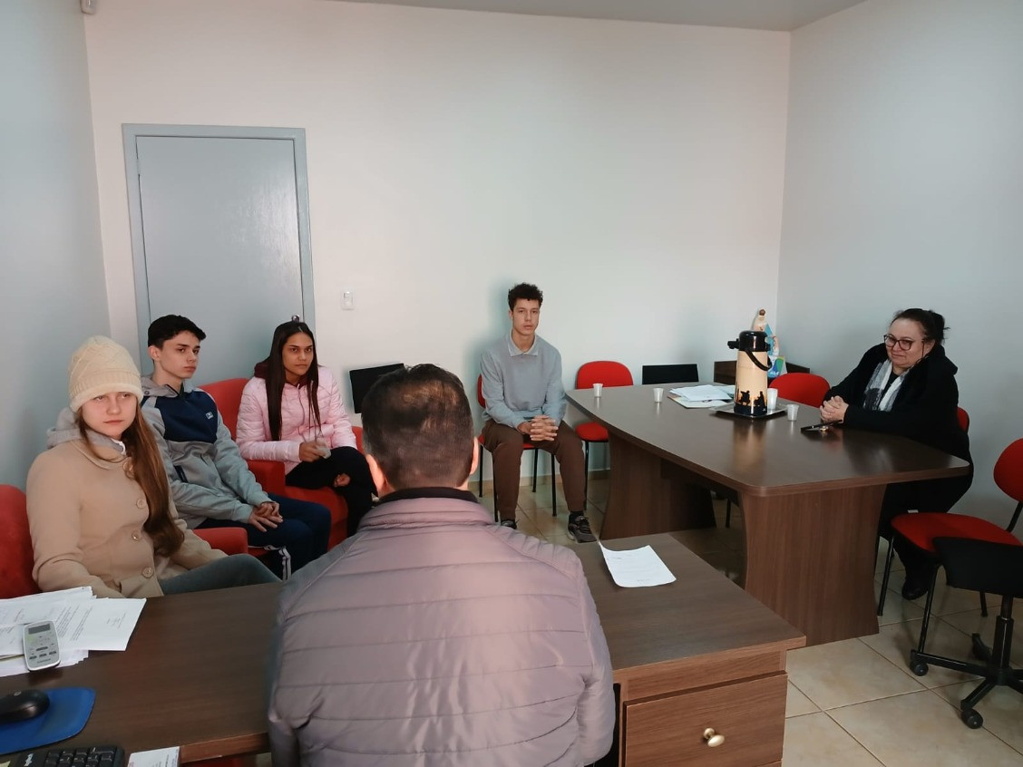 Na manhã do último dia 02 de julho, abrindo as visitas às Secretarias Municipais, os Vereadores Jovens da Câmara Municipal de Paim Filho, Tamiris Basso, Diego Alves da Silva, Carlos Antônio Antunes da Rosa e Patricia Dalbozzo, acompanhados pela Oficial Legislativo e Coordenadora do Programa Vereador Jovem/Escola Vai à Câmara, Maria Isabel Gelaim Vanz e pela Diretora da Escola Estadual de Educação Básica Luiza Formighieri, Profª Fabiana Bárbara Grazziotin Dias, estiveram na Secretaria Municipal de Educação, Cultura – SMEC, onde foram recebidos pelo Secretário Carlos Humberto Dal Prá, que acolheu o grupo e relatou as atividades desenvolvidas pela Secretaria e as responsabilidades que a ela compete, inclusive a parte esportiva, além dos Conselhos, os quais de extrema importância para o bom funcionamento da mesma em toda sua estrutura.